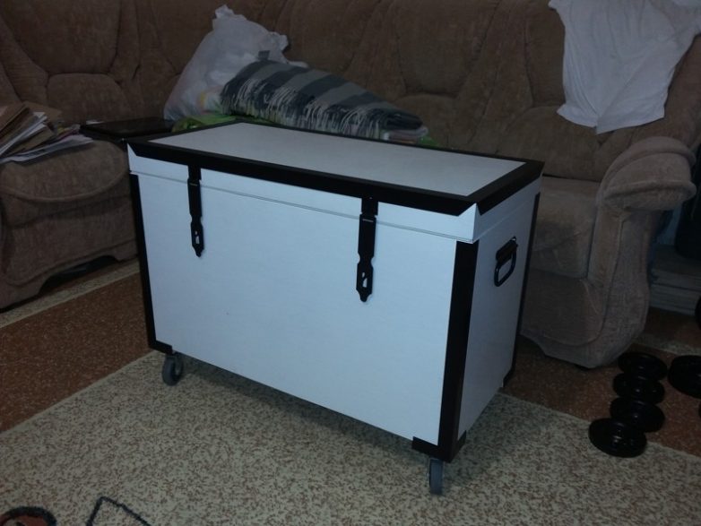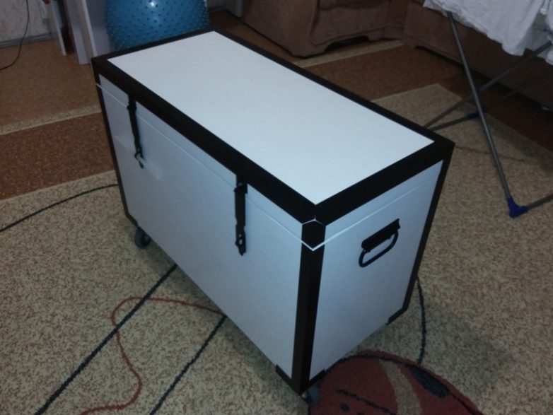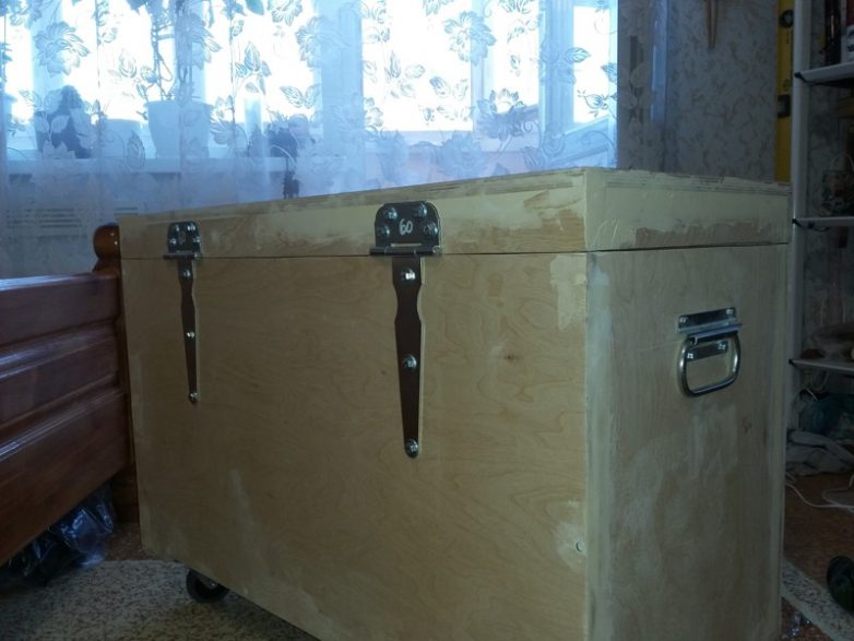 1. Сунддук получился немного выше, чем хотелось бы. Не рассчитал высоту колес с подкладками и высоту крышки.