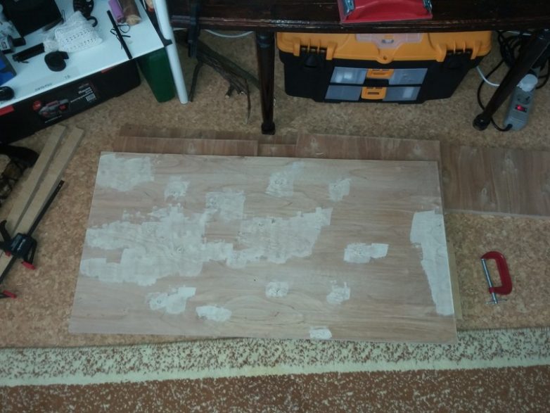 Хотя фанера вполне пристойного качества, мелкие дефекты пришлось устранять.