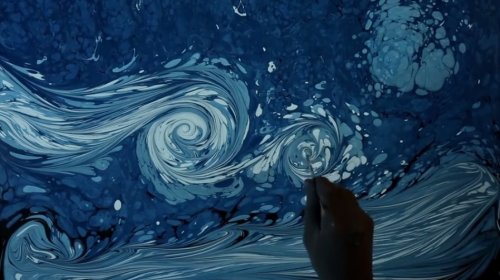 Это способ рисования на поверхности воды, с помощью которого можно создавать узоры, похожие на гладкий мрамор или другие виды камня.