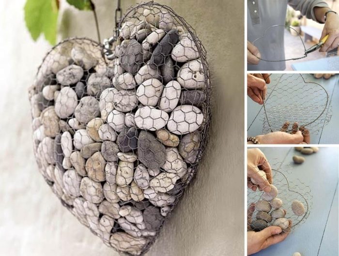 Сердце, которое можно создать своими руками из металлической проволоки и морской гальки.