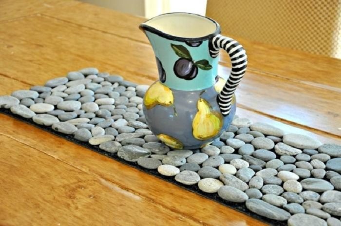 Мелкая галька послужит стойким и оригинальным материалом для создания подставки.