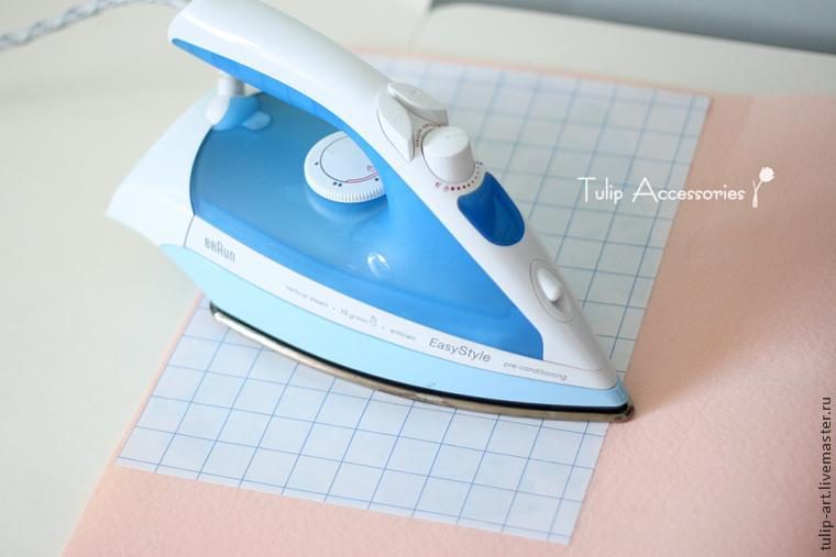 Переводим термотрансфер на лист фетра. Для этого кладем рапечатку изображением вниз на фетр и гладим утюгом, тщательно, не торопясь, проглаживая каждый сантиметр поверхности настолько горячим утюгом, насколько только выдерживает фетр (если вы делаете это впервые, то лучше будет потренироваться на небольшом обрезке фетра и подобрать такую максимальную температуру, при которой фетр еще не плавится, но уже вот-вот начнет).