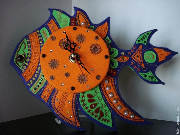 Потраченные средства: готовое изделие выходит совсем не дорого, так как главное здесь фетр, который у рукодельниц, как правило, есть в наличии + часовой механизм, стоит он совсем не дорого (около 65 грн или 240 руб — можно и дешевле найти).