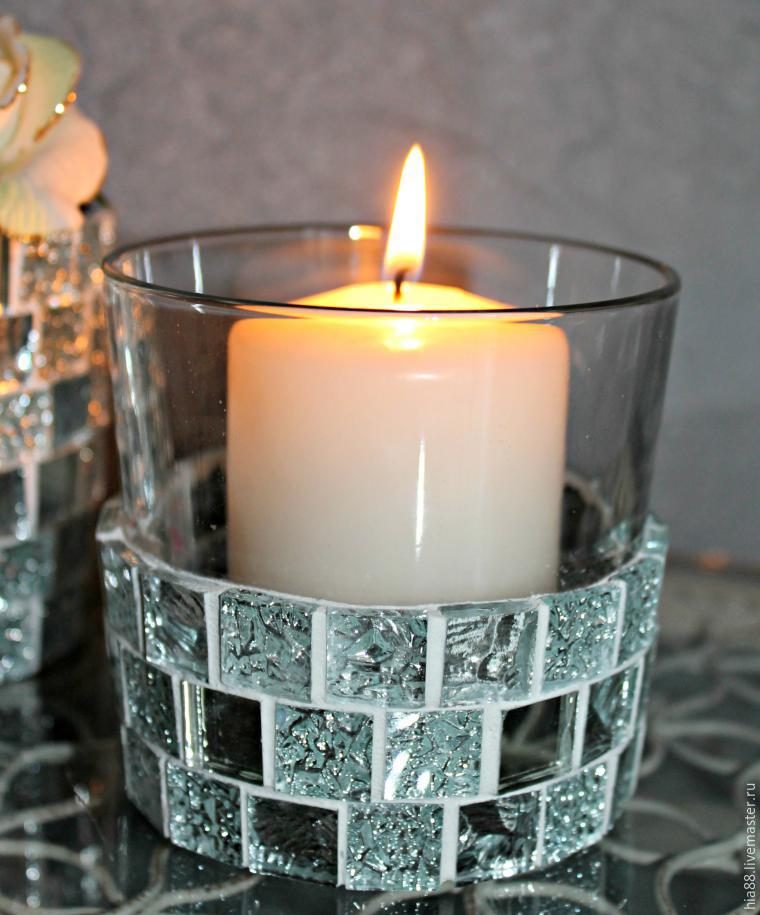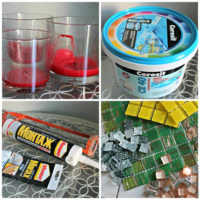 Обожаю свечи и покупаю их в огромном колличестве, после чего остаются «основы» (стаканы), которые так и ждут, когда им дадут новую жизнь! В данном мастер-классе я предлагаю задекорировать «основы» — мозаикой.