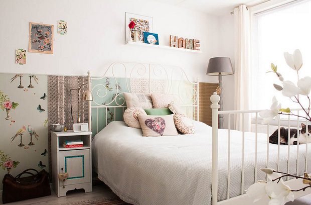 Изголовье для кровати из остатков обоев.Прикроватное изголовье может кардинально преобразить интерьер спальни. Самый простой, но от этого не менее эффектный вариант — наклеить на стену полоску обоев шириной по размеру кровати или чуть больше.