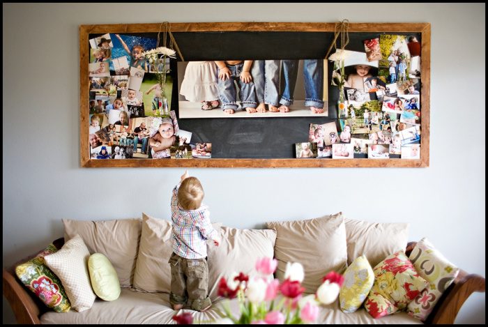 На стену можно повесить фото, собранные в коллаж.