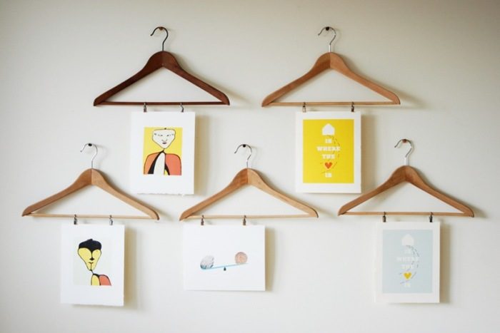 Вешалки с креплениями, которые десятками висят в каждом шкафу, становятся необычными креплениями для фото. Главное — распечатать фото в подходящем размере, соответствующем длине вешалки.