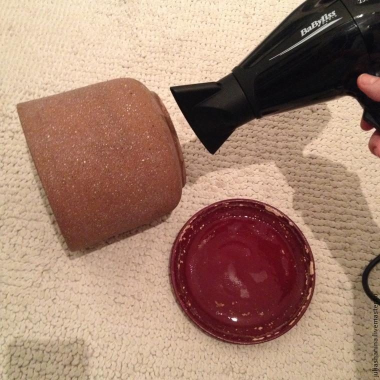 Если вы сушите феном с подачей горячего воздуха, перед тем, как приступать к покраске остудите горшок.