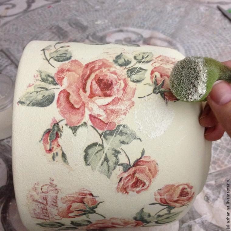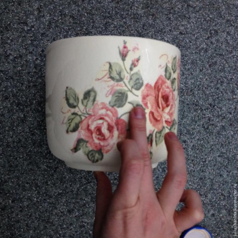 — салфетка с мотивом, который будет на горшке.