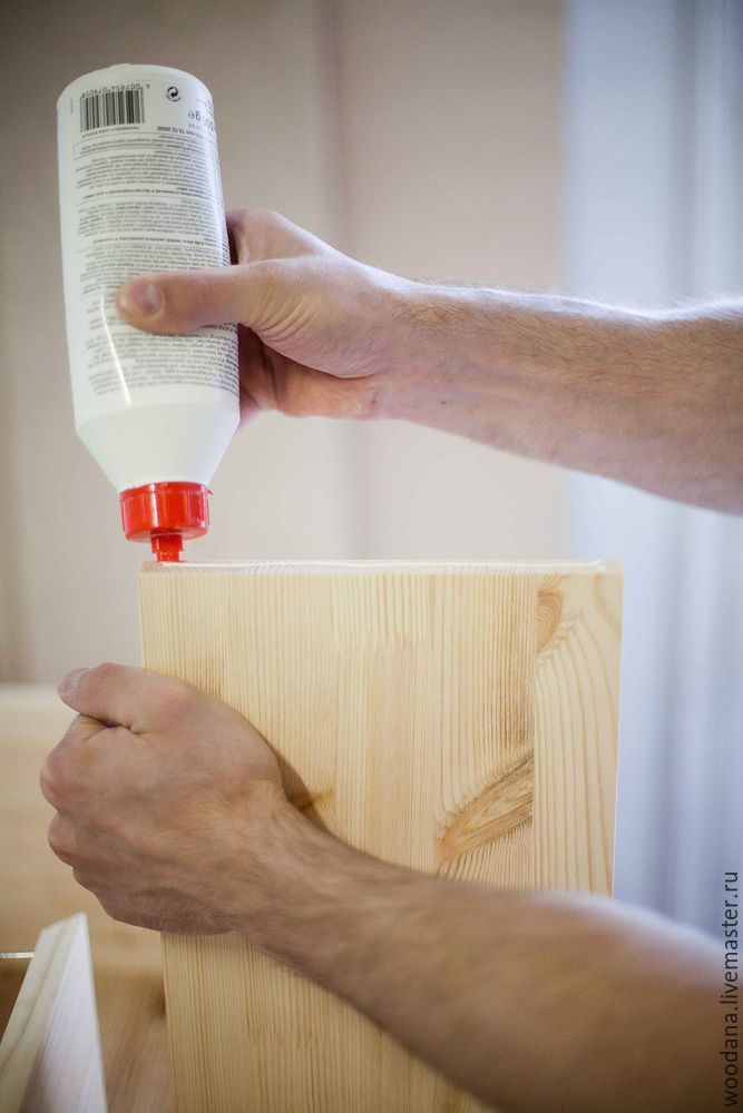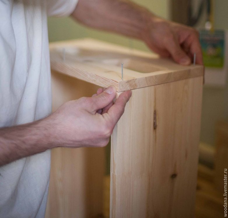14. С помощью клея и потайных гвоздей крепим заднюю стенку.