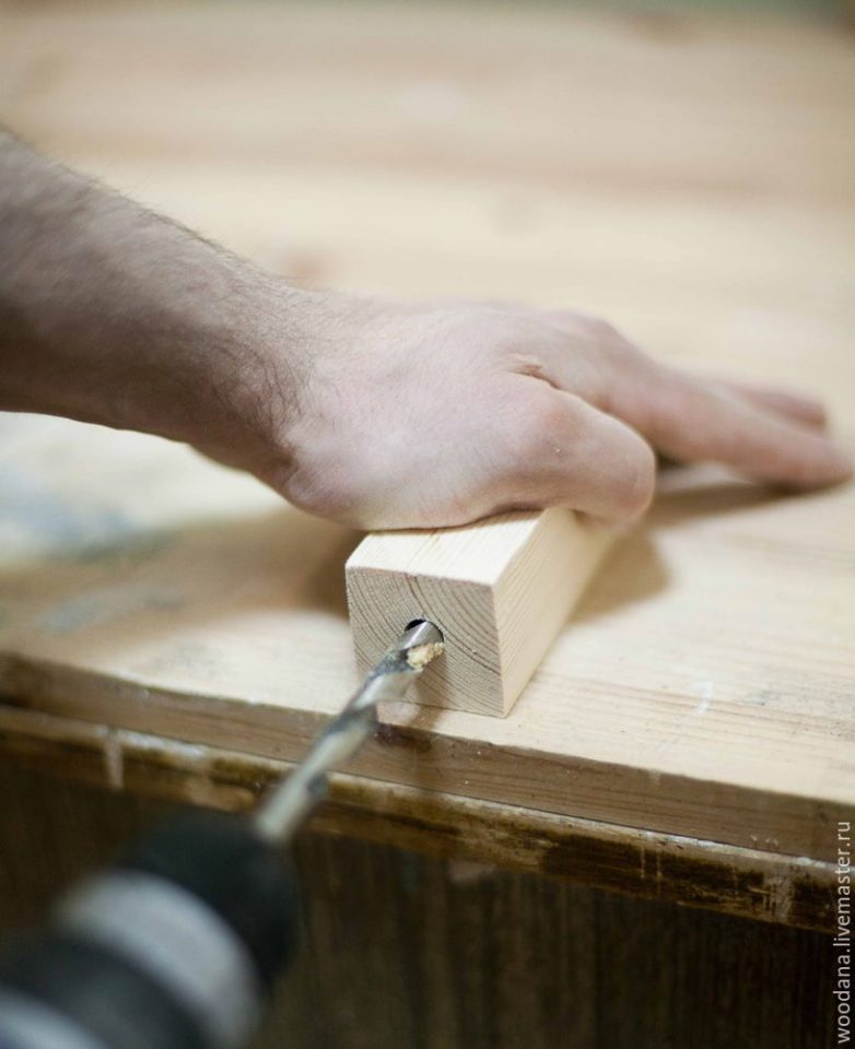 17. Делаем отверстия 10 мм в заготовках из бруска для крепления в них реек и все отшлифовываем на наждачной бумаге (зернистость 120).