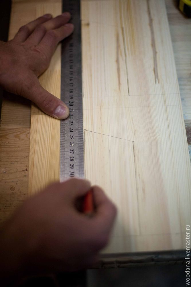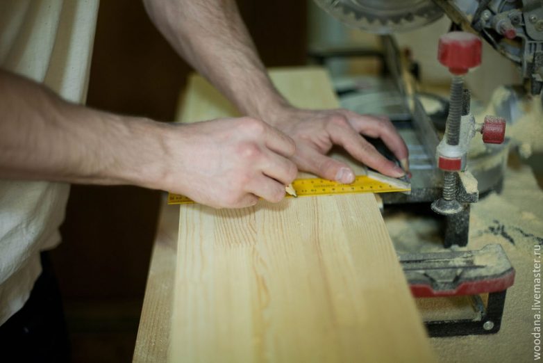 1. По размерам чертежа делаем разметку на заготовленном мебельном щите.
