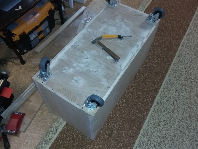1. Сунддук получился немного выше, чем хотелось бы. Не рассчитал высоту колес с подкладками и высоту крышки.