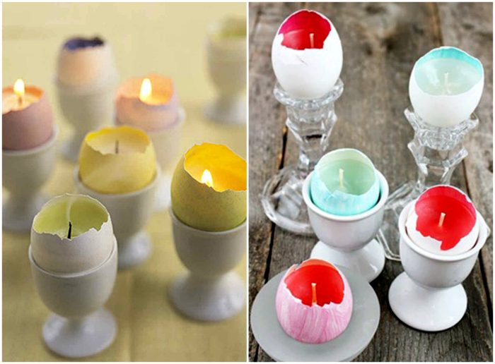 Яичную скорлупу можно использовать для создания оригинальных свечей, которые станут прекрасным украшением праздничного интерьера.