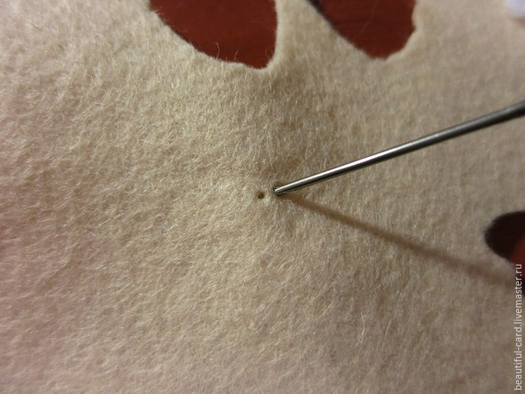 Чтобы игла с лентой легче проходили через фетр, можно заранее подготовить дырочки при помощи более толстой иглы.