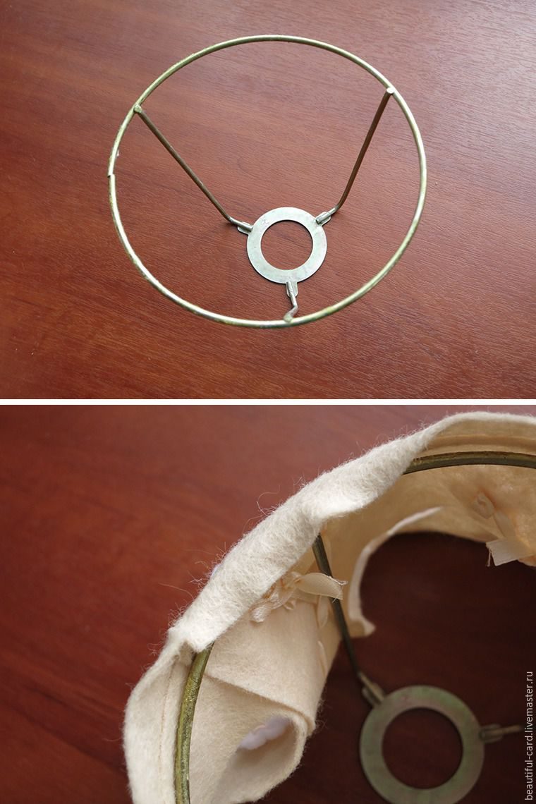 Берём верхнее кольцо от абажура и приклеиваем к нему фетр.