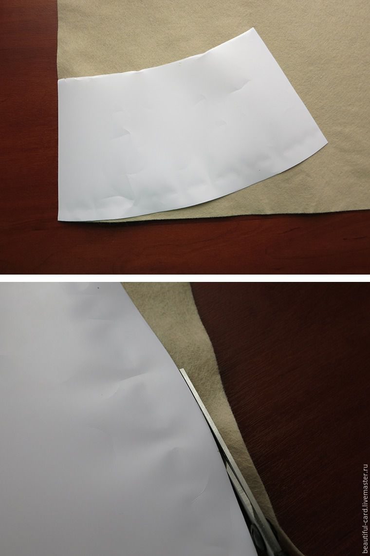 Теперь, чтобы мне не перерисовывать деталь, я при помощи двустороннего скотча приклеила бумагу к фетру и вырезала по контуру.