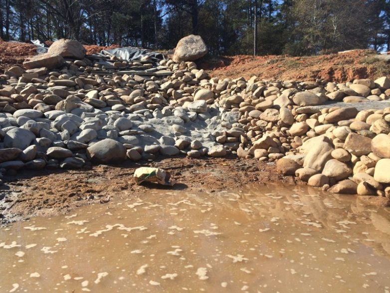Пришлось разбирать остатки дамбы, убирать весь песок и строить ее заново, к тому же сделав более широкой и плоской.