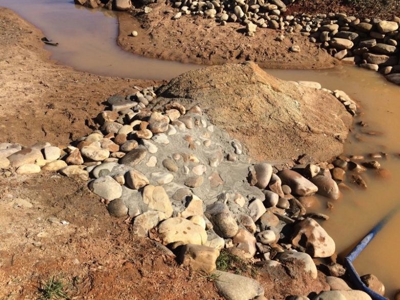 Дополнительный слой крупных камней помог скрыть цемент.
