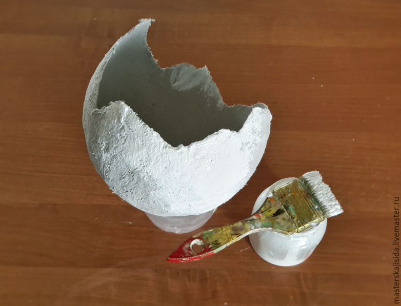 Итак, скорлупа яйца из штукатурки — прекрасный элемент декора праздничного пасхального стола или весеннего интерьера. Живые цветы размещенные в такой скорлупе — хороший подарок близкому человеку.