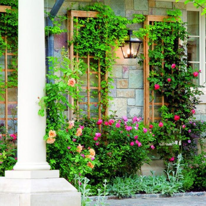 Вьющиеся растения — это, пожалуй, самое простое и в то же время красивое украшение садового участка. Кадки с плетистыми растениями и шпалеры можно разместить на веранде, у стен беседки или у забора.