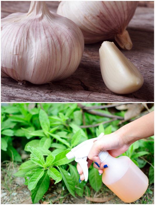 Четыре зубчика чеснока залейте кипятком и оставьте настаиваться в течении получаса после чего, добавляйте его в воду для полива в пропорциях 1 ложка настойки на литр воды. Такая хитрость позволит избавиться от вредителей и защитить растения от грибка.