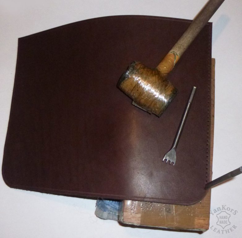 Строчным пробойником пробиваем на всех деталях, кроме боковушек, отверстия для шва.