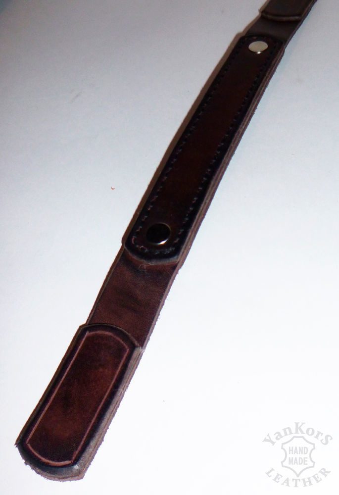 Теперь пришиваем крепление для ремня. Здесь это ремешок, идущий вдоль боковушки, оканчивающийся полукольцами.