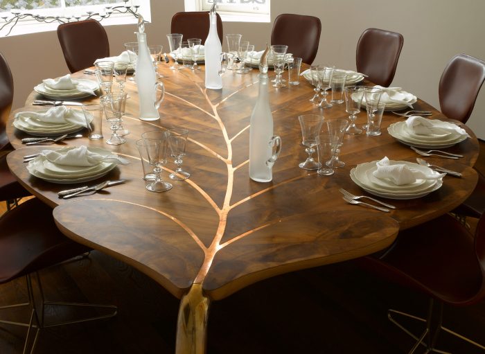 и стол в виде древесного листа тоже оригинально и красиво.