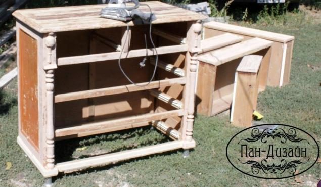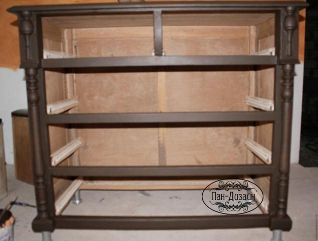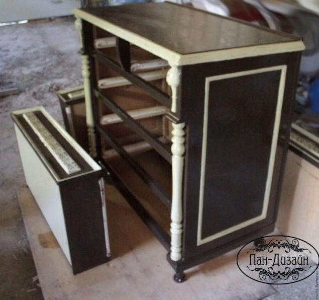 Вот результат — красавец с прикрученными ручками, и по желанию хозяйки мы к ящикам прикрепили полозья как в современных комодах, так что не только красивый, но и функциональный!