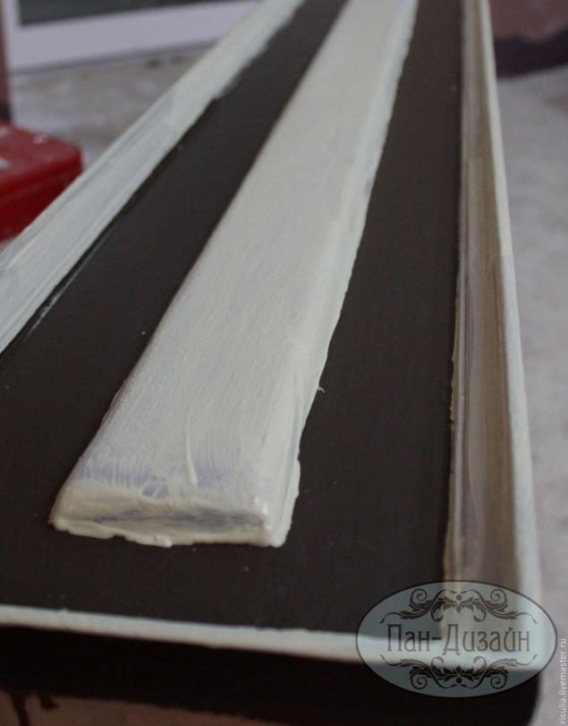 Видно, что не аккуратно, но это не беда! Акрил сохнет быстро и после высыхания его легко подправить темным цветом на который случайно залезли светлой краской, для этой цели конечно применяем тоненькую кисточку (не больше 4 номера.)