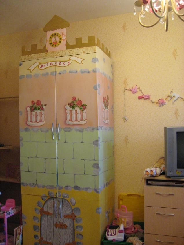 Теперь у нас шкаф не портит интерьер, а служит украшением дочиной комнаты;)
