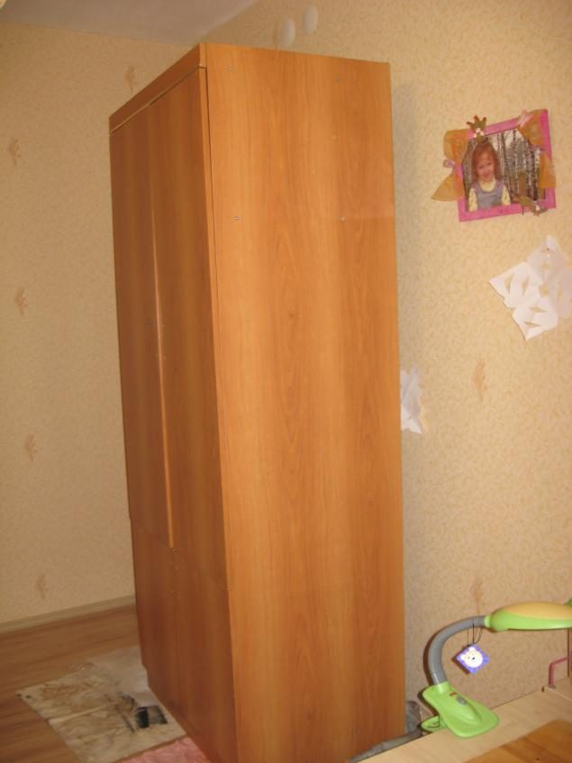 Был обычный шкаф от «стенки» 15-летней давности. Стенку разобрали и увезли в сад, а выкидывать шкаф и покупать новый только из-за того, что он не подходит к детской, было очень жаль.