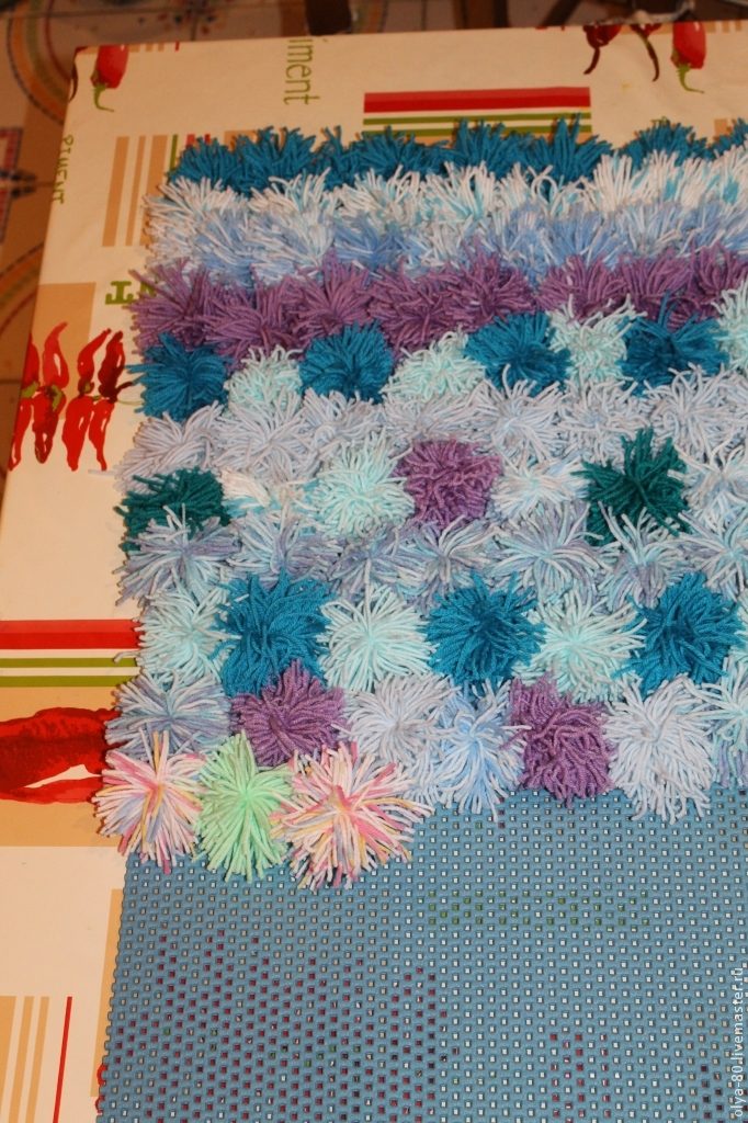 Далее за длинные кончики нитки я привязывала его уже к коврику.