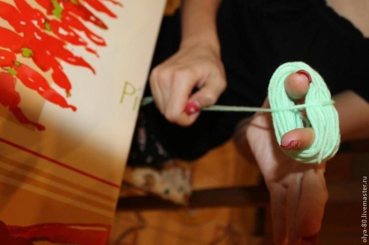 Далее я из клубков делала следующее: наматывала на пальцы пряжу, делала витков по 45-55 раз, можно делать больше в зависимости от густоты получаемого помпона.