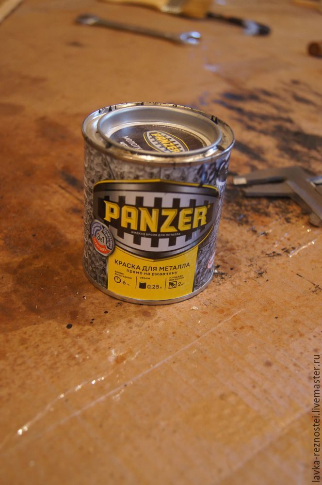 Подготовленную поверхность обрабатываем краской по металлу. В нашем случае использован более дешевый аналог всем известного Хамерайта (Hammerite). По качеству эта краска ничуть не уступает, но вот цена приятно удивляет — в 2-3 раза дешевле популярной марки.