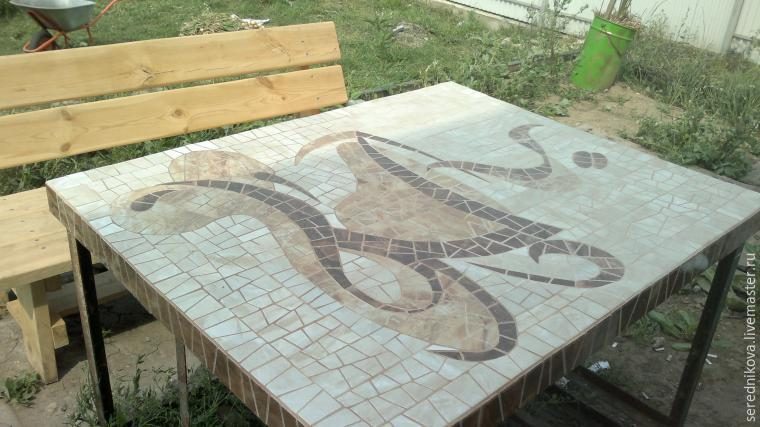 После затирки рисунок немного потерялся, но впрочем, это на любителя. Вот все стол готов.