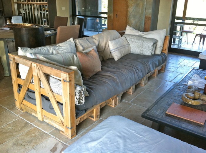 Необычный диван из поддонов в стиле кантри.
