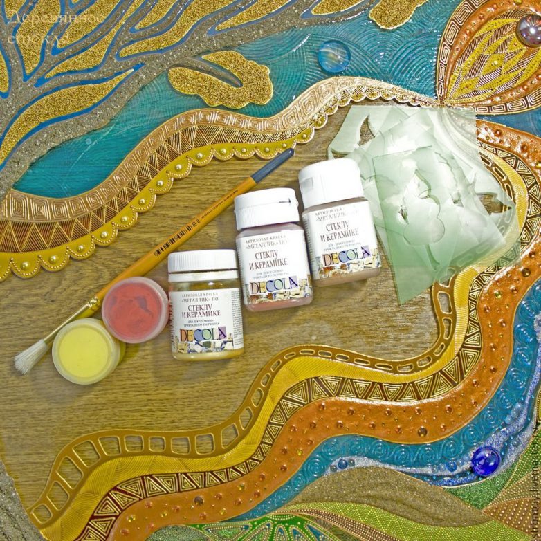 Сегодня я буду делать панно с применением самых ходовых и недорогих материалов для декора и рисования по стеклу, которые можно найти в любом художественном магазине. Я никого не буду учить, как «надо делать», я лишь покажу «как я это делаю». Итак…