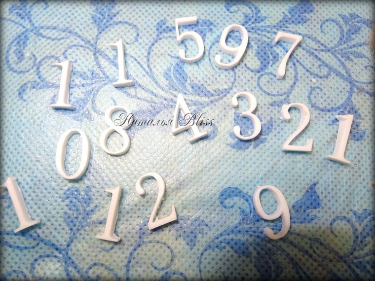 Кладем цифры на тарелочку, берем спиртовую краску серого и розового цветов, красим и покрываем лаком.