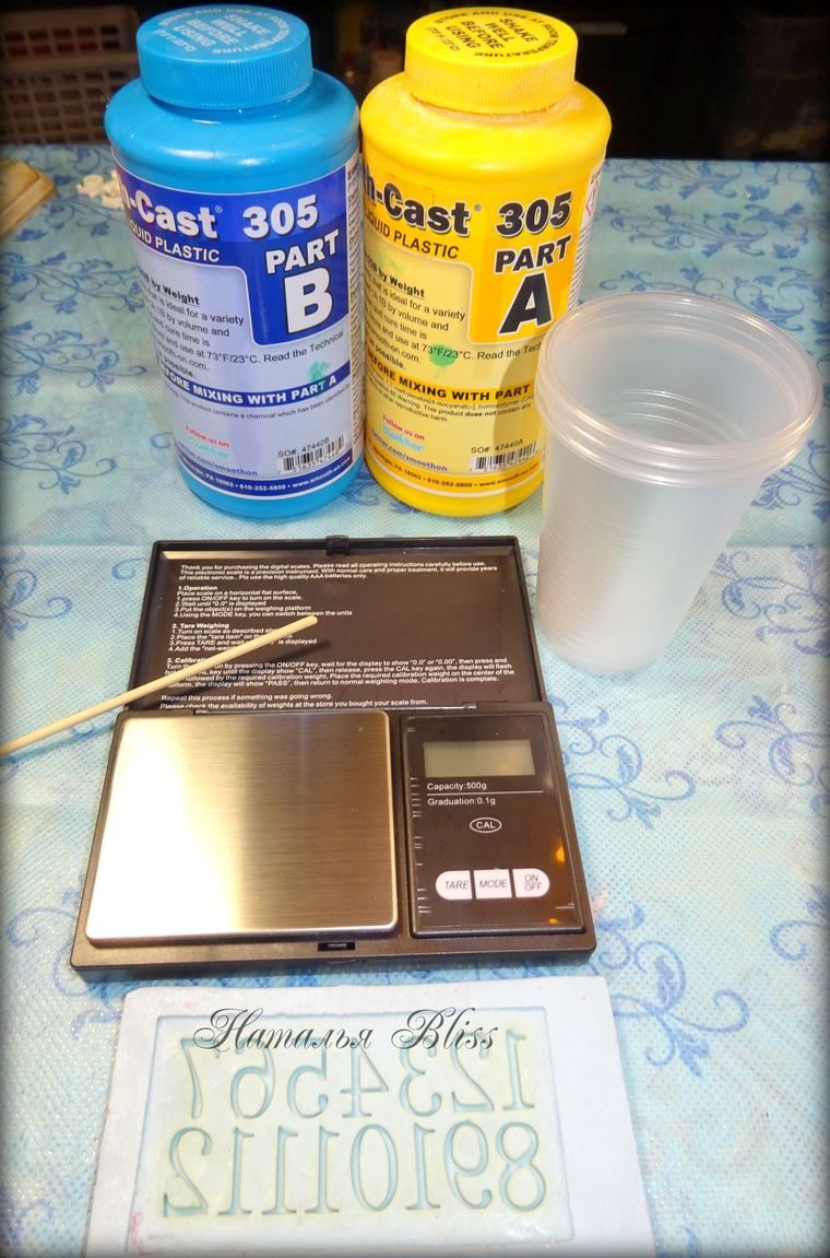 Пока лак сохнет, готовим жидкий пластик, весы, одноразовый стаканчик и силиконовый молд.
