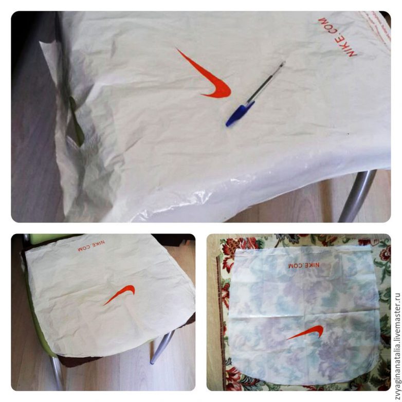 Вот так, при помощи обыкновенного пакета, я сняла выкройку с сиденья стула: