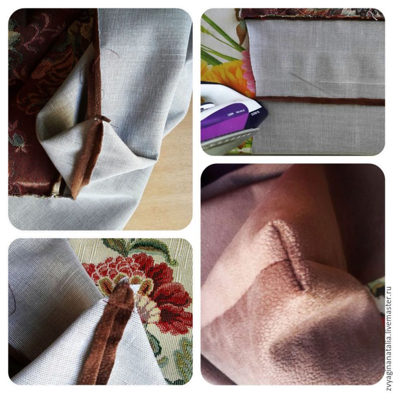 Сшиваю обе половинки. Разглаживаю швы. Прострачиваю уголки, как показано на фотографии, тогда в вывернутом состоянии чехол будет красиво сидеть на стуле.
