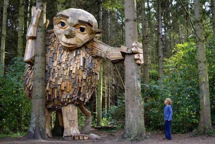 Датский художник Томас Дамбо (Thomas Dambo) создает поражающие воображение скульптуры из дерева, изображающие мифических существ.