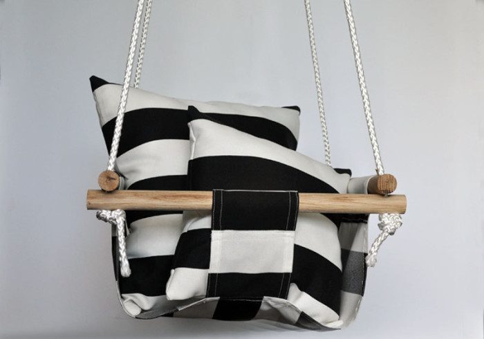 Самый сложный момент при создании таких качелей — найти прочный металлический круг, который станет их основой. Ткань, которая крепится на основе в два слоя, также должна быть достаточно плотной. Остается только натянуть текстиль на основу и сшить. Такие тканевые качели способны принимать форму человеческого тела, и поэтому будут максимально удобными.