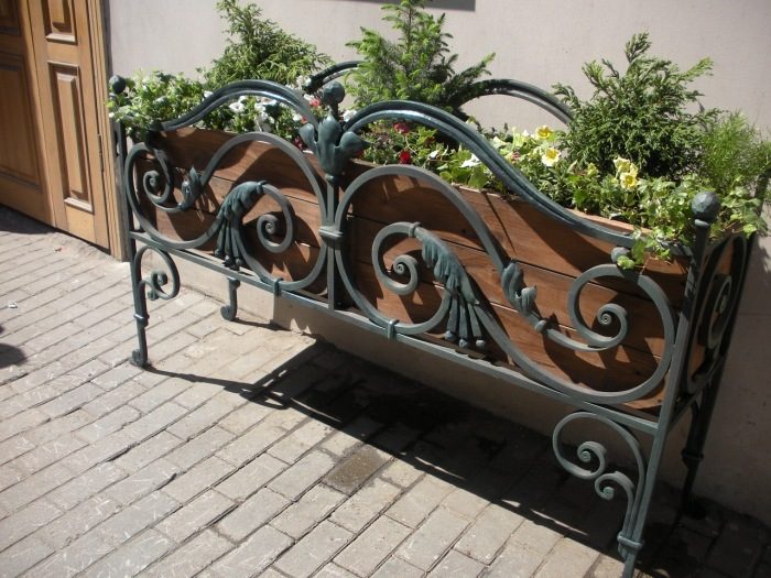 Кованая металлическая подставка для грядки отлично впишется в ландшафтный дизайн.