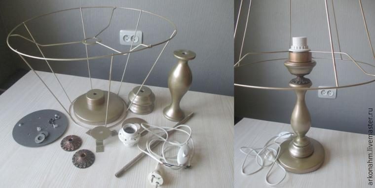 Что делать, если старая настольная лампа надоела и постоянно тянется рука ее выбросить, а стратегические запасы лоскутов, кружева и ленточек пытаются выселить тебя из квартиры?