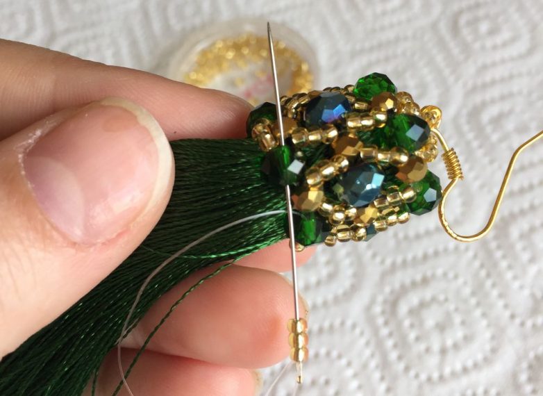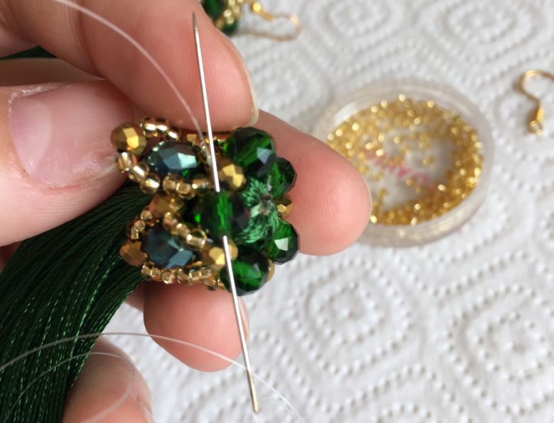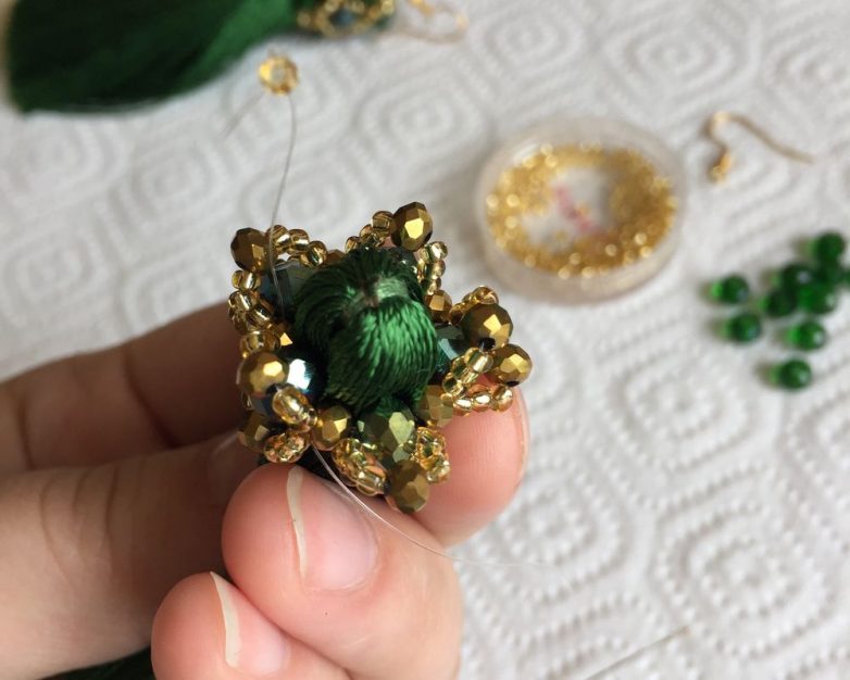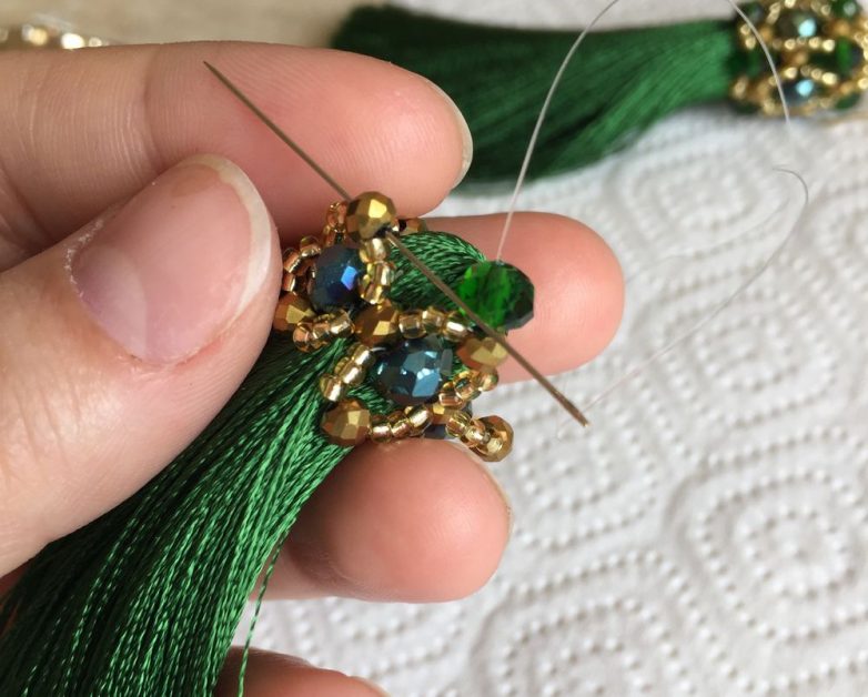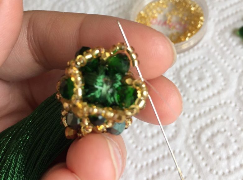 На этом этапе леску с бисереной (кончик с которого начали работу) можно обрезать.