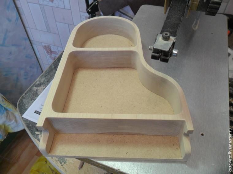 Всё красится в белый грунт, лакируется. Получается рояль-шкатулка: