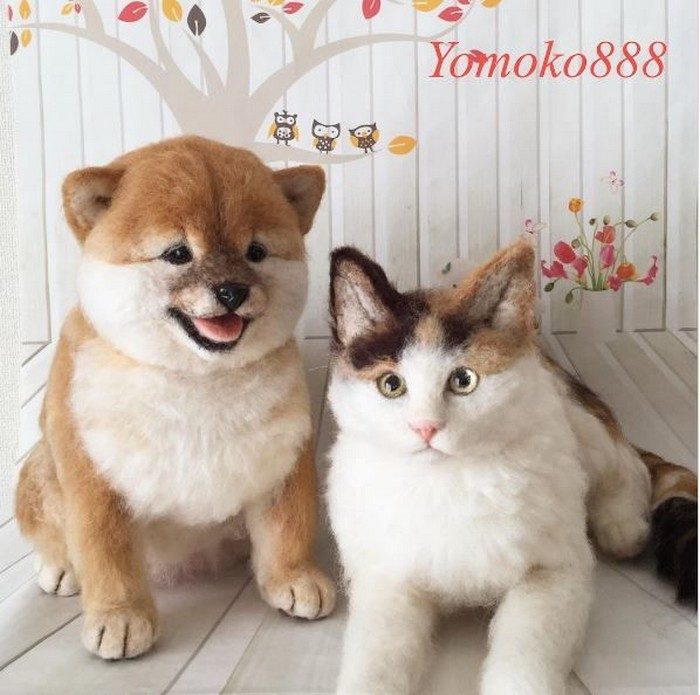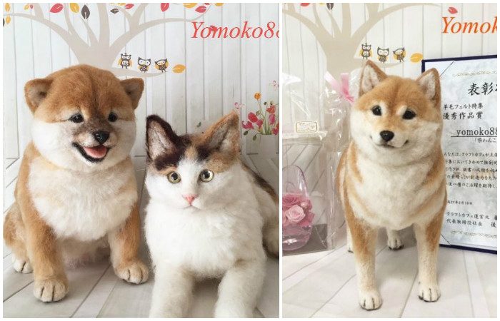 Социальные сети восхищаются талантом японской мастерицы. Yomoko делает сложные скульптуры собак и котов практически в натуральную величину. При том у японки явно есть свои предпочтения в породах: среди её подделок можно увидеть популярных в Японии сиба-ину (да-да, это же Хатико!), милых корги, шотландских овчарок и такс. А коты всех мастей выглядят так, будто вот-вот замурлычут.